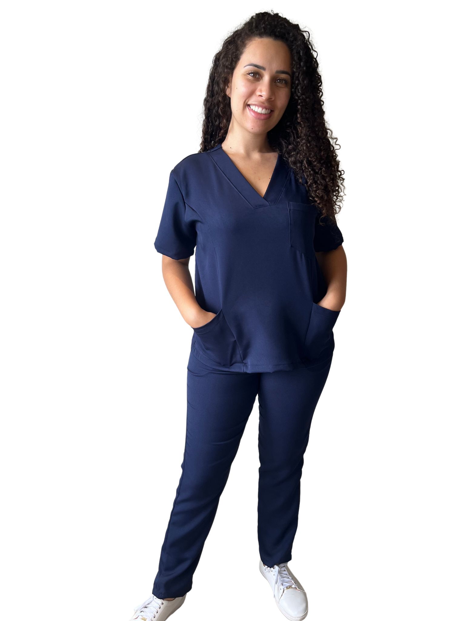 Scrub Conjunto Pijama Cirúrgico Feminino Tradicional Azul-marinho P